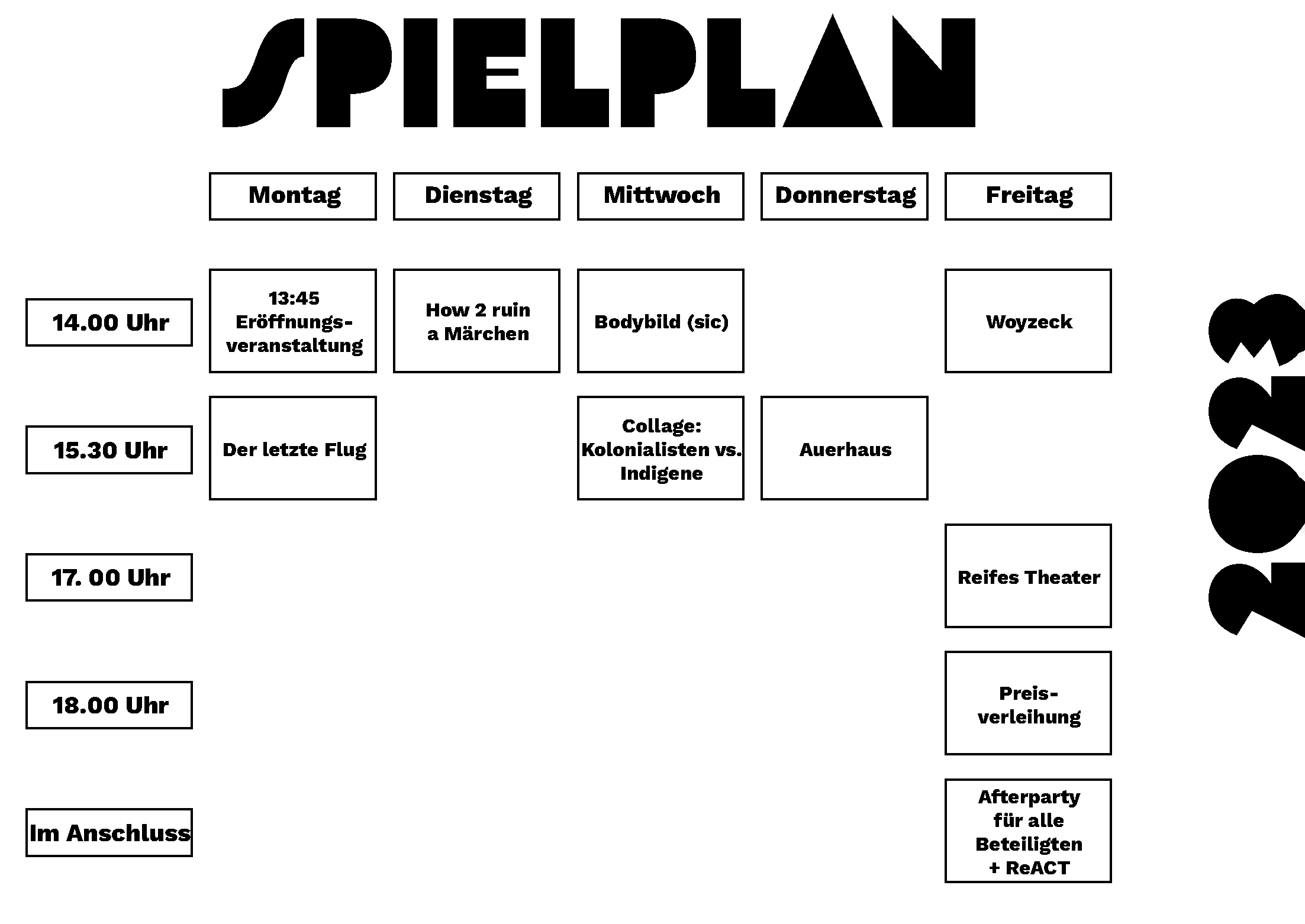 Die Eröffnung des Festivals findet am 27.02.23 um 13:45 Uhr am Otto-Nagel-Gymnasium statt. Hier erwartet dich ein interaktiver Vortrag zur Bedeutung des schauspielerischen Unterrichts in der heutigen Zeit.