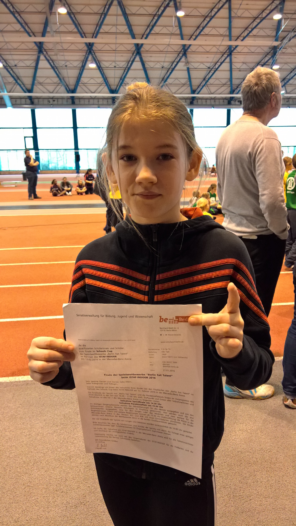 Stars der Leichtathletik rund um Robert Harting versammeln sich zum weltweit größten Hallen-Meeting. Und mittendrin: Alina Spaniol aus der 5.2. Sie hatte bereits die Qualifikation im Januar überzeugend gewonnen.