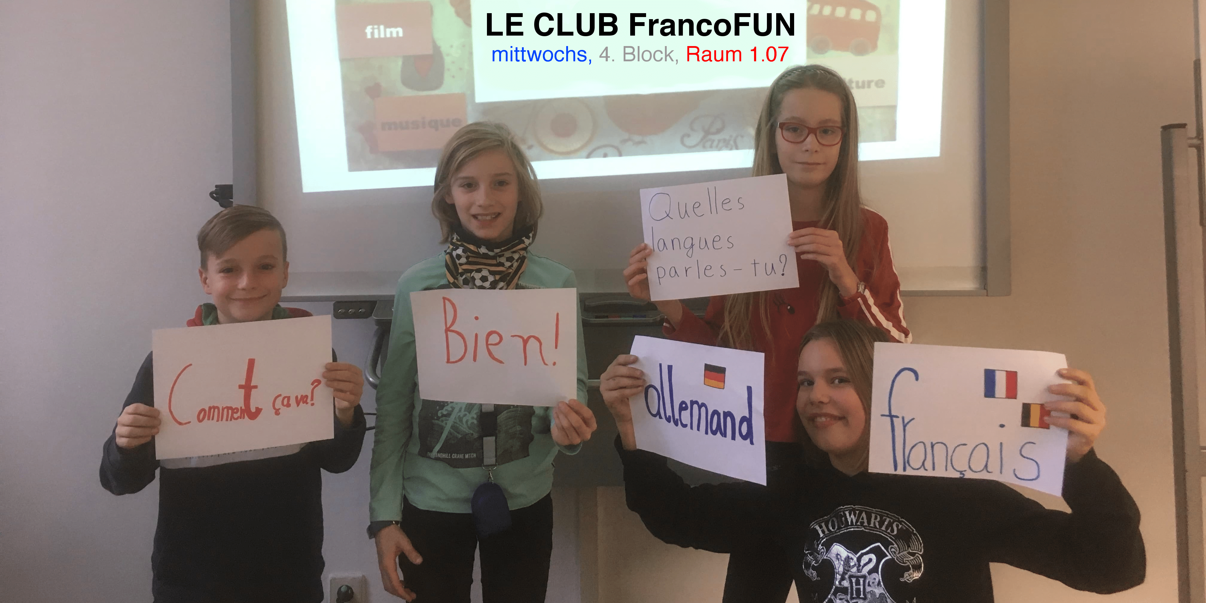 Im Oktober diesen Jahres waren alle Französisch-WPU-Kurse im York-Kino bei einem witzigen, aber sehr ernsthaften Film: C’est quoi cette famille (deutscher Titel Wohne lieber ungewöhnlich) erzählt die bizarre Geschichte von 8 mehr oder weniger verwandten Stief-, Halb und echten Geschwistern, die es satt haben, zwischen mehreren Haushalten zu pendeln und kein festes Zuhause zu haben. Sie leiden unter der „Unfähigkeit“ der Eltern, friedlich und langlebig verheiratet zu sein, zusammen zu leben, ohne sich alsbald scheiden zu lassen. Also hecken sie einen Plan aus: Sie entführen kurzerhand den Kleinsten, besetzen eine große alte Wohnung und versuchen zunächst ohne Wissen der Eltern das Alltagsleben zu meistern. Eine reine Party! Sobald die Eltern dahinter kommen, stellt die Jugend die Eltern vor ihre Entscheidung: „Ab heute müsst Ihr pendeln! Es sollen immer eine „Mutter“ und ein“ Vater“ früh und abends anwesend sein.“ Der Zufall entscheidet, wer dies unter den teilweise zerstrittenen Eltern, Partnern, Ex-Eheleuten etc. sein soll. Eine geniale Idee, denn nicht nur, dass die Kinder so ein festes Zuhause, einen Rhythmus, ein Refugium allen Geschwistern und Eltern haben, sondern auch, dass die Erwachsenen sich neu kennenlernen, miteinander reden und letztlich viele Vorurteile, Masken und Vorwürfe fallen. Der Plan gelingt und die Eltern sind nach einer Probephase überzeugt: Die Kinder bringen selbstständig den Müll raus und gehen einkaufen!