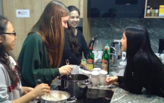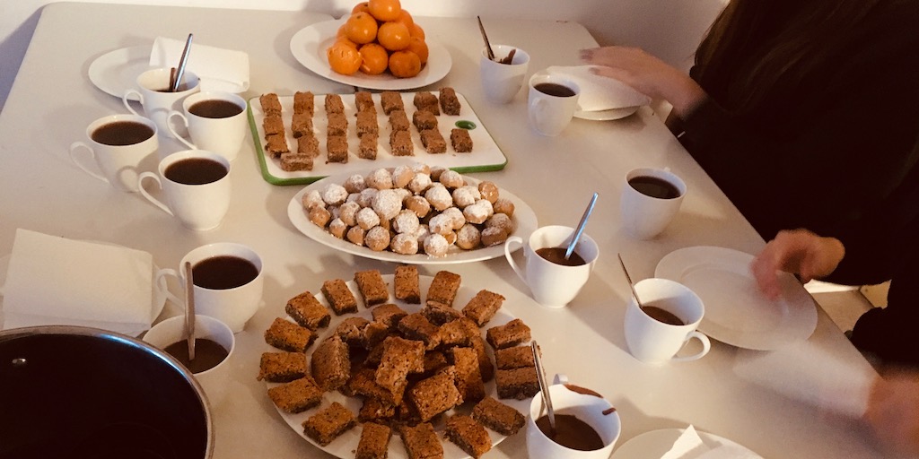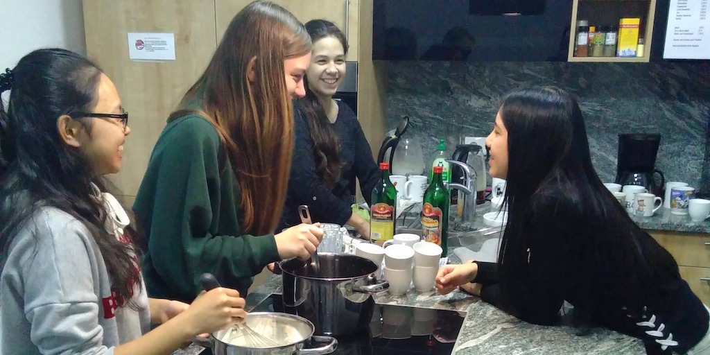 Im Dezember hat sich die Küche im Treppenhaus in eine spanische Weihnachtsbäckerei verwandelt. Dahinter steckte die IG Spanisch, die zuckersüßes spanisches Weihnachtsgebäck hergestellt hat. Zu selbst hergestelltem turrón (Mandelgebäck) und polvorones (Schmalzgebäck) kam neben Kinderpunsch und Zitrusfrüchten auch noch original spanische heiße Schokolade auf den Tisch. So war nicht nur für jede Teilnehmerin der Zuckerschock garantiert. Auch waren wir alle gestärkt, um anschließend villancicos (spanische Weihnachtslieder) anzustimmen – hervorragend begleitet von den Gitarristinnen Joanne B. und Laura C. aus der 10.3. Zum vollkommen gelungenen Jahresabschluss bleibt nur noch zu sagen: ¡Feliz navidad y prospero año! Frohe Weihnachten und ein frohes neues Jahr!