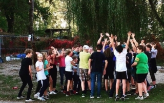 Nach dem Frühstück des zweiten Tages traf sich die 7.4 erneut mit den „Kurzzeithelden“. Dieses Mal spielten sie einige Bewegungsspiele auf dem weitläufigen Gelände des Hölzernen Sees. Dabei waren Koordination und Zusammenhalt gefragt. In der letzten Einheit mit den „Kurzzeithelden“, welche nach dem Mittag erfolgte, waren nochmal unterschiedliche Spiele an der Reihe. Unter anderem eine abgewandelte Version von „Stadt – Land – Fluss“, oder auch „Verbrannt“. Danach waren alle erschöpft und froh über die kleine Pause bis zum Abendesssen. Am letzten Abend vor der Abreise fand eine Disco statt, für die sich manche schick machten und bei der hoffentlich alle Spaß hatten.