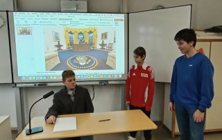 Die Klasse 7.4 bereitet in Lebenskunde ein Video für den diesjährigen Demokratietag vor.