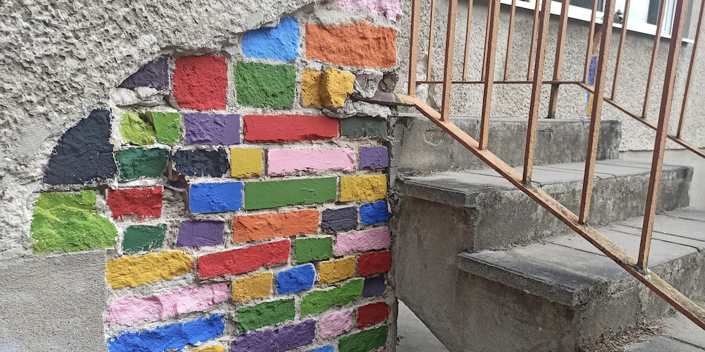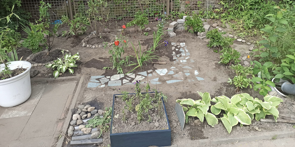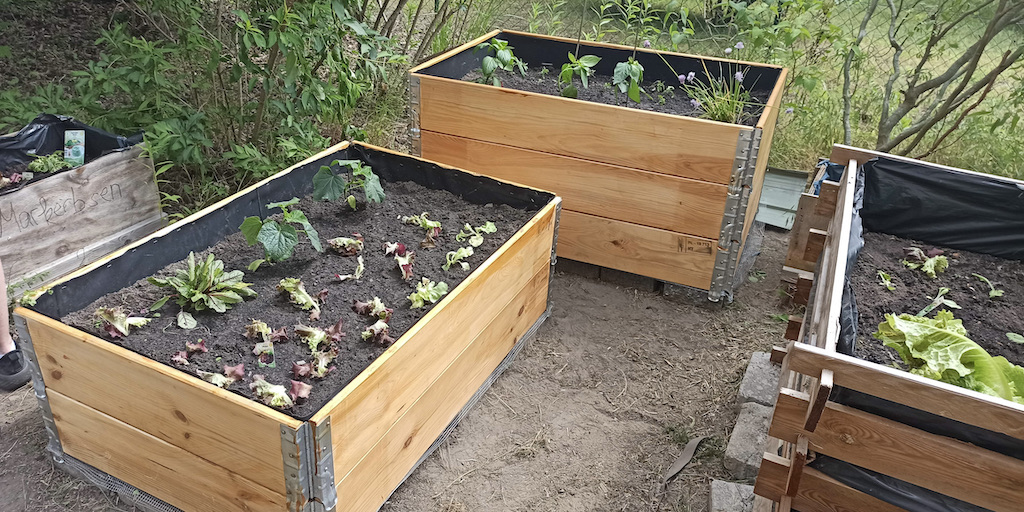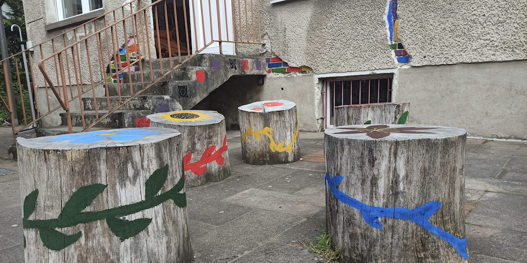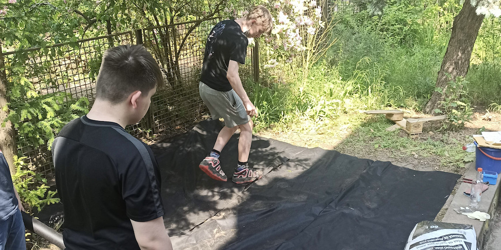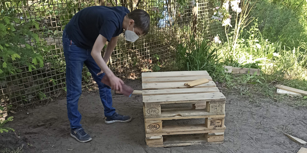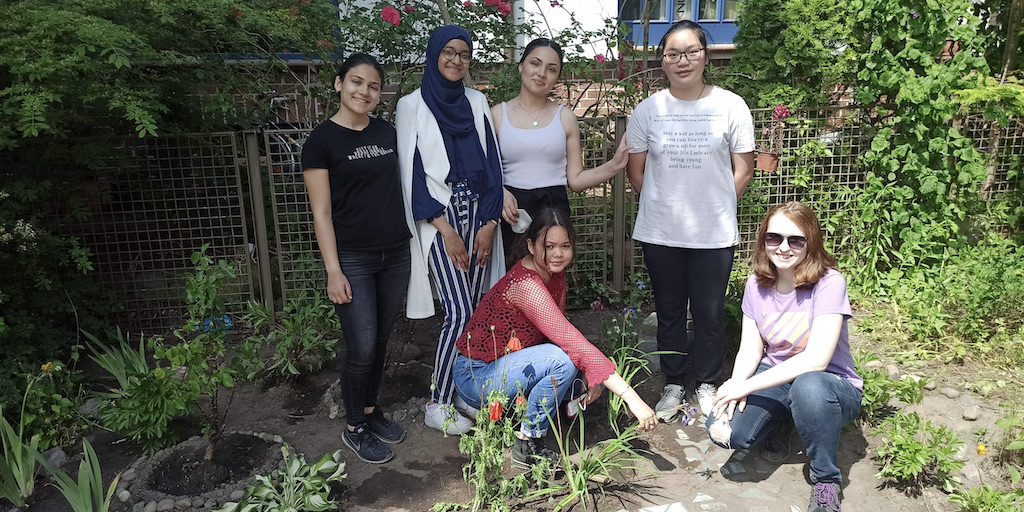 Zusammen arbeiteten fünf Gruppen, die verschiedene Berufsbilder repräsentierten, an der Verschönerungen des Gartens im Treppenhaus.