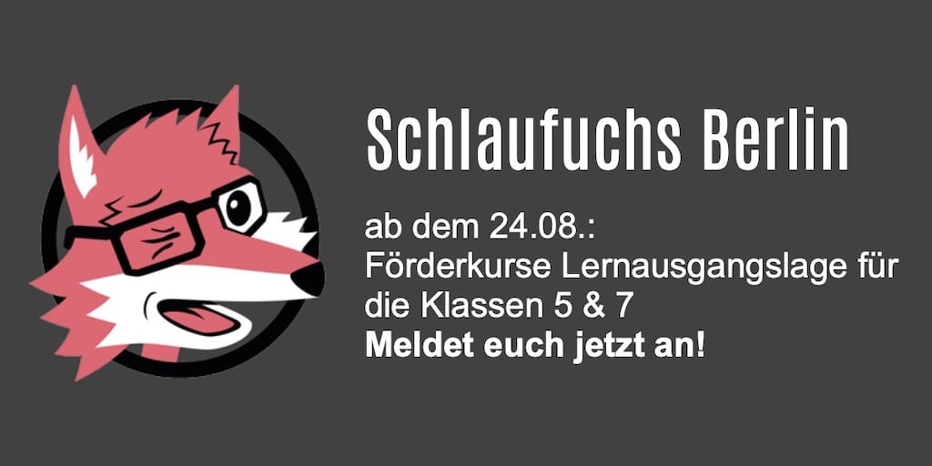 Schlaufuchs bietet ab dem 24.08. Förderkurse für die 5. und 7. Klassen an, um Defizite, die erst durch den Schulwechsel ans Gymnasium sichtbar geworden sind, gemeinsam auszugleichen. Meldet euch jetzt für Mathematik, Deutsch und/ oder Englisch an!