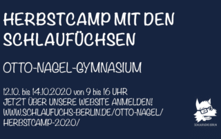 Das Schlaufuchs Herbstcamp ist zurück, dieses Mal nur in anderer Form als gewohnt, vom 11.10-15.10 um 9 Uhr bis 16 Uhr.