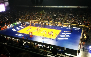 Im Anschluss an die Wettkämpfe der Klassen wurde um den „kleinen“ Wanderpokal gestritten. Die Schüler des 11.Jahrgangs forderten den amtierenden Meister heraus. In einer hochklassigen Partie beider Mannschaften konnte sich die Lehrermannschaft am Ende trotz großem Kampf der Schüler allerdings recht deutlich mit 25:15 und 25:12 durchsetzen und so den Titel verteidigen.