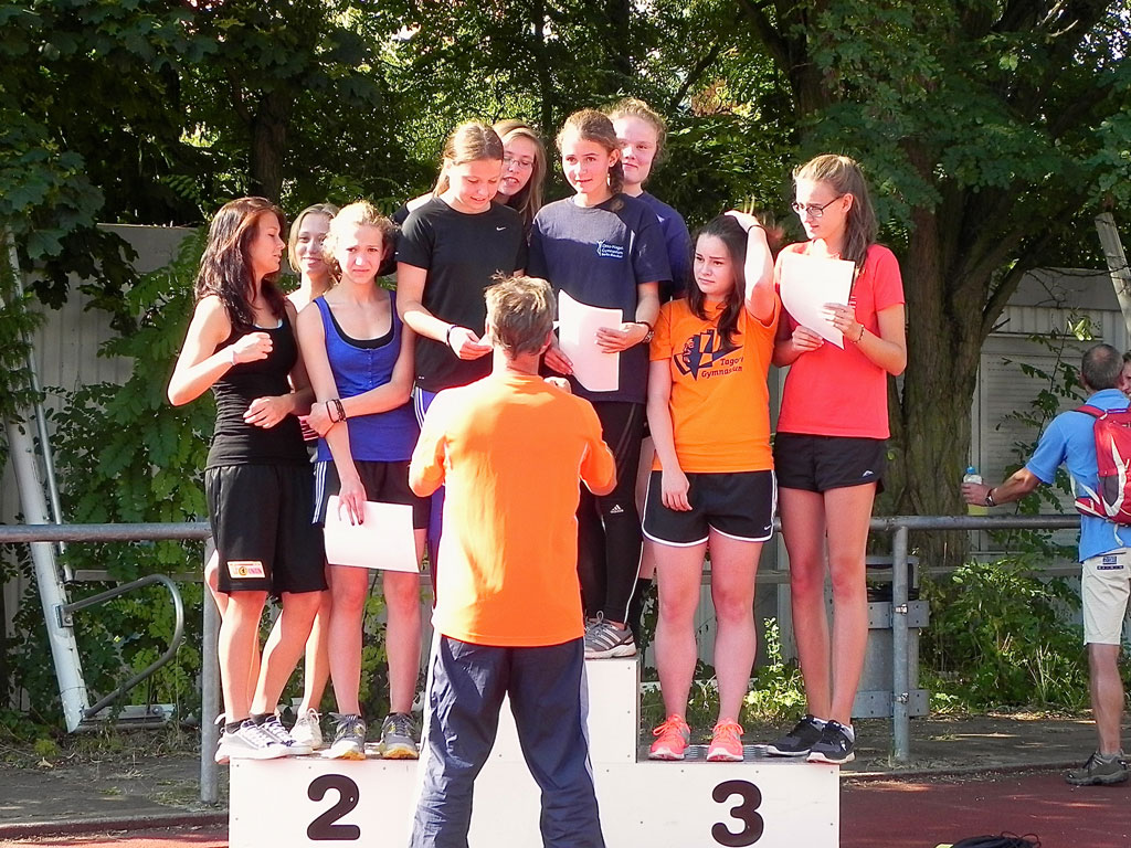Auf dem Sportplatz Allee der Kosmonauten wurden am Mittwoch die Marzahn-Hellersdorfer Staffeltage veranstaltet. Drei Staffeln hat das Otto-Nagel-Gymnasium an den Start geschickt. Alle drei Staffeln konnten mit hervorragenden Läufen und super Zeiten die ersten Plätze erzielen und sich so als Bezirksmeister für das Berlinfinale am 17.09.2013 qualifizieren.