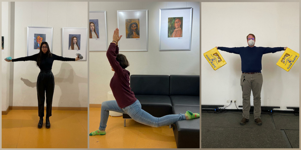 Um die Motivation der Schüler am Laufen zu halten, erhielten die Schüler der 5.2 den Auftrag, sich beim häuslichen Sportunterricht zu filmen oder zu fotografieren. Als Arbeitsergebnis ist nun ein kleines Video entstanden, dass zumindest das Gefühl gibt, gemeinschaftlich Sport betrieben zu haben.