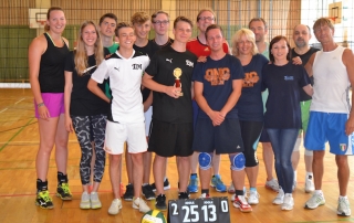 Im Anschluss an die Wettkämpfe der Klassen wurde um den „kleinen“ Wanderpokal gestritten. Die Schüler des 11.Jahrgangs forderten den amtierenden Meister heraus. In einer hochklassigen Partie beider Mannschaften konnte sich die Lehrermannschaft am Ende trotz großem Kampf der Schüler allerdings recht deutlich mit 25:15 und 25:12 durchsetzen und so den Titel verteidigen.