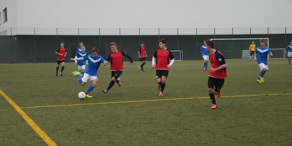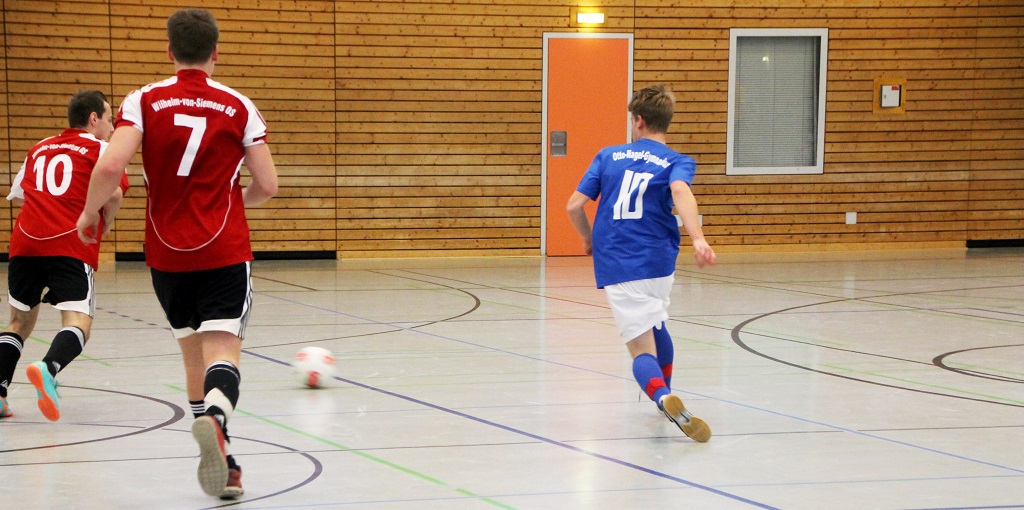 In der Vorrunde ging es gegen das Siemens-Gymnasium und die Haeckel-Schule. Haeckel und Siemens trennten sich im 1. Spiel 0:0, was für unsere Mannschaft eigentlich beste Vorraussetzungen bot. Das erste Spiel unser Mannschaft war gegen das Siemens-Gymnasium, dessen Spieler körperlich um einiges weiter waren und die von der Zuschauertribüne wie Riesen gegen unsere Jungs aussahen. So kam es auch, dass der größte und breiteste Spieler der Gegner mit einen wuchtigen Schuss das 1:0 schoss. Unser Team rappelte sich noch einmal auf und versuchte dagegen zu halten. Technisch besaßen unsere Spieler einige Vorteile, leider reichte das nicht aus, um die körperlichen Defizite auszugleichen und wir bekamen kurz darauf auch schon das 2:0. Am Ende konnten wir noch 1-2 gute Chancen verzeichnen, aber irgendwie wollte der Ball einfach nicht ins Tor.
