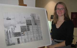 Fotografisch hielten wir das Verhältnis zwischen Kunstwerk und Betrachter fest. Dazu positionierten wir uns vor den in Licht gesetzten Malereien und Plastiken. Der klare Aufbau der Ausstellung erleichterte uns dabei die Arbeit mit der Kamera.