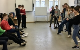 Unter Einhaltung der Hygienemaßnahmen war es dem Leistungskurs Englisch von Herrn Tietz möglich, einen Abend in der Aula zu übernachten, um sich die US-Wahl live anzusehen.