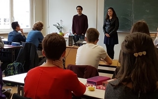 Im Rahmen des Projektes MeetUS empfing die Klasse 10.3 für einen Block zwei Gastredner der US-Botschaft.