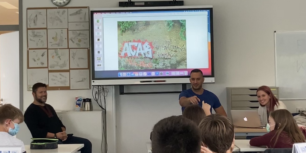 Wir als Friedenstauben setzen uns aktiv dafür ein, unsere Mitmenschen zum offenen und friedlichen Miteinander zu motivieren. Um diese Konversation anzustoßen, haben wir auch in diesem Jahr mit meet2respect kooperiert und den „Respekt verbindet!“-Unterrichtsbesuch am 04. Oktober im 6. Jahrgang organisiert. Sehr gefreut haben wir uns über zwei bekannte Gesichter, denn auch dieses Jahr wurde der Besuch vom Polizisten Koray und dem Imam Ender durchgeführt.