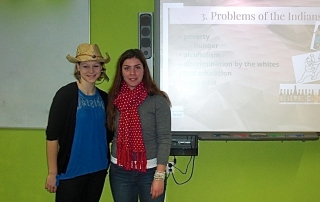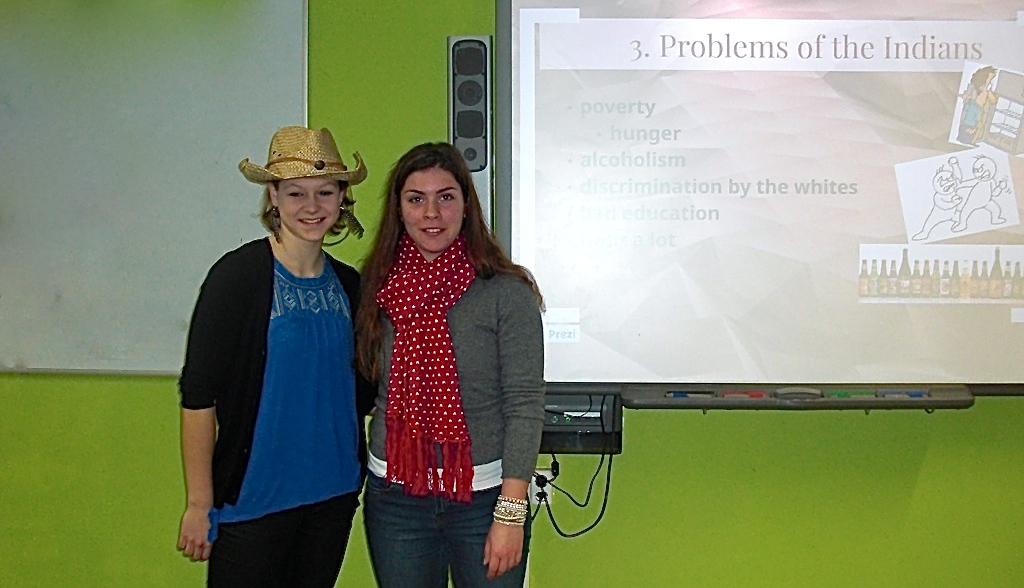 Schüler aus der 12. unterrichten Schüler aus der 8. Klasse im Englischunterricht