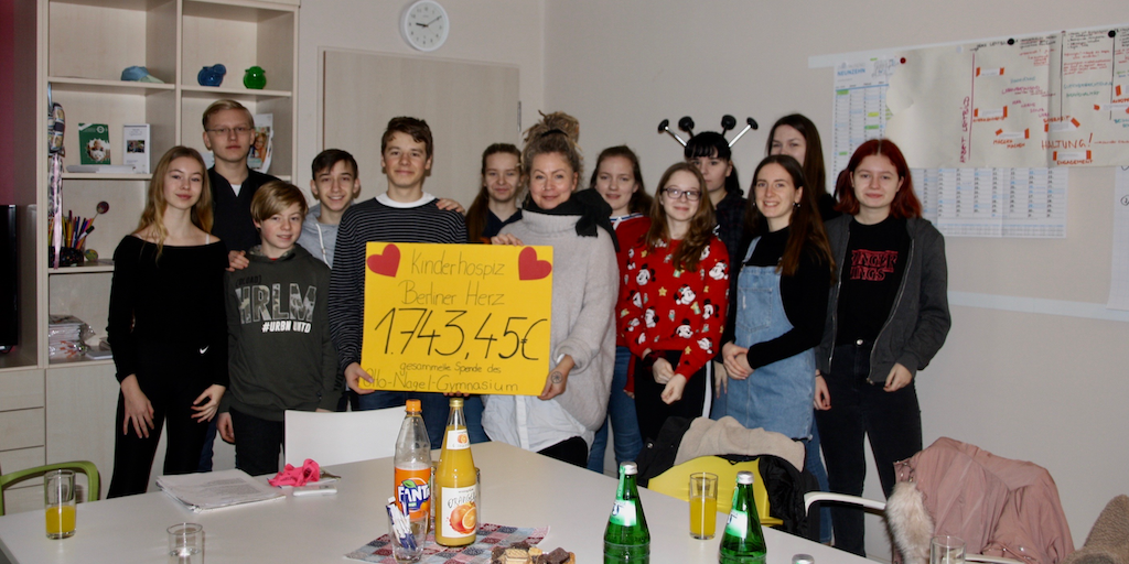 Die Klasse 9.2 sammelte vor den Elternversammlungen Spenden für die Versorgung und Unterhaltungsmöglichkeiten der Kinder im Kinderhospiz „Berliner Herz“.