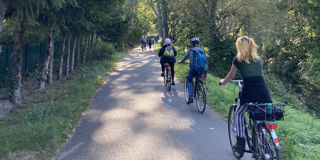 Die 9.4 gibt bei einer gemeinsamen Radtour nochmal alles, um für die Aktion Stadtradeln am letzten Tag ordentlich Kilometer zu sammeln.