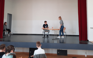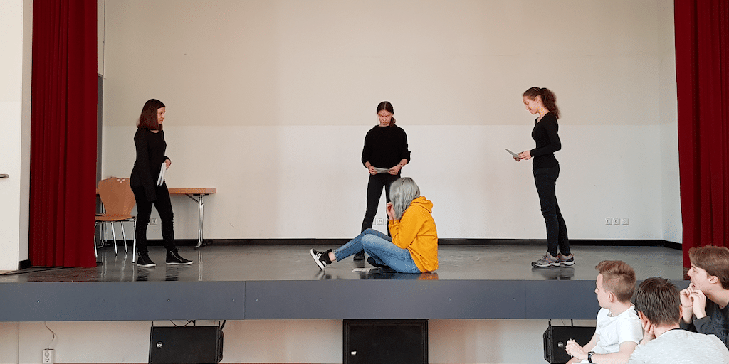 Da es zur Dramatik dazugehört, sie auf der Bühne zu sehen, sollten die Schülerinnen und Schüler des Grundkurses Deutsch sich daran probieren, eine Szene aus „Die Räuber“ auf die Bühne zu bringen.