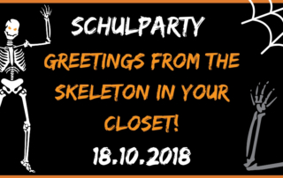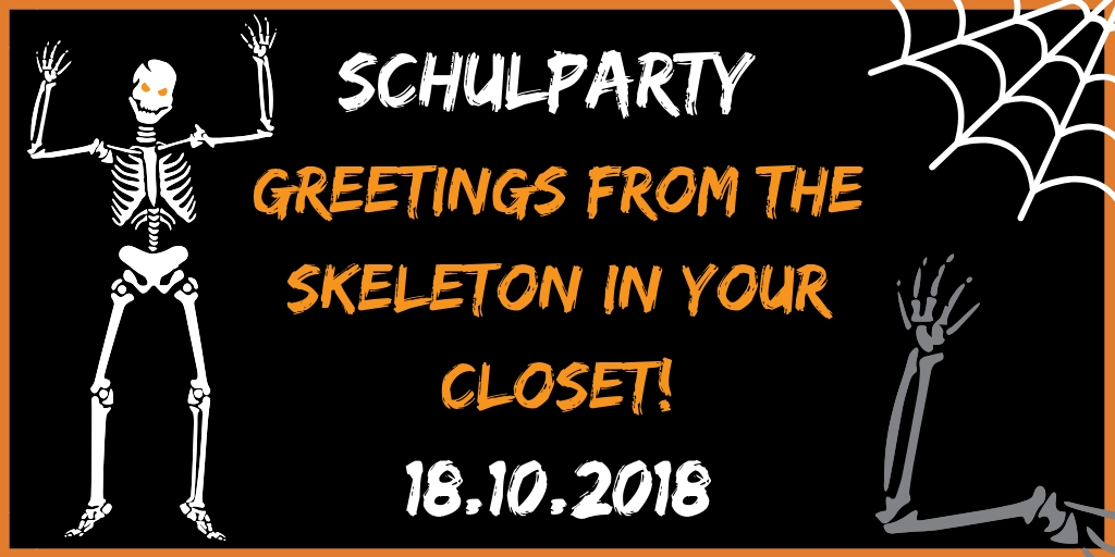 Verkleidet euch passend zum Thema Halloween, für die erste Schulparty des Schuljahres 18/19 am 18. Oktober und gewinnt den Kostümwettbewerb! Je gruseliger und schauriger, desto besser!