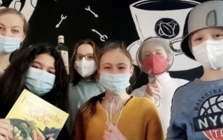 Um gemeinsam noch einmal eine entspannte Zeit zu verbringen, das vergangene Jahr Revue passieren zu lassen und die erworbenen Deutschkenntnisse anzuwenden, bevor dann die abschließende B1-Sprachprüfung durchgeführt wird, hat die Willkommensklasse gemeinsam im Treppenhaus Muffins und Cupkakes gebacken.