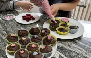 Um gemeinsam noch einmal eine entspannte Zeit zu verbringen, das vergangene Jahr Revue passieren zu lassen und die erworbenen Deutschkenntnisse anzuwenden, bevor dann die abschließende B1-Sprachprüfung durchgeführt wird, hat die Willkommensklasse gemeinsam im Treppenhaus Muffins und Cupkakes gebacken.
