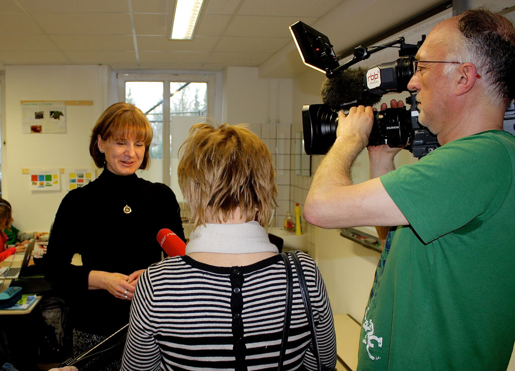 Heute filmte der rbb den Laptop-Unterricht der 5.2 und interviewte die Klassenlehrerin, Frau Goldammer, den Elternvertreter, Herr Dannenberg, und Vertreter des Teams Redaktion zum Einsatz neuer Medien an der Schule. Das Otto-Nagel-Gymnasium gilt als eines der Wegbereiter des computergestützten Unterrichts an den Berliner Schulen.