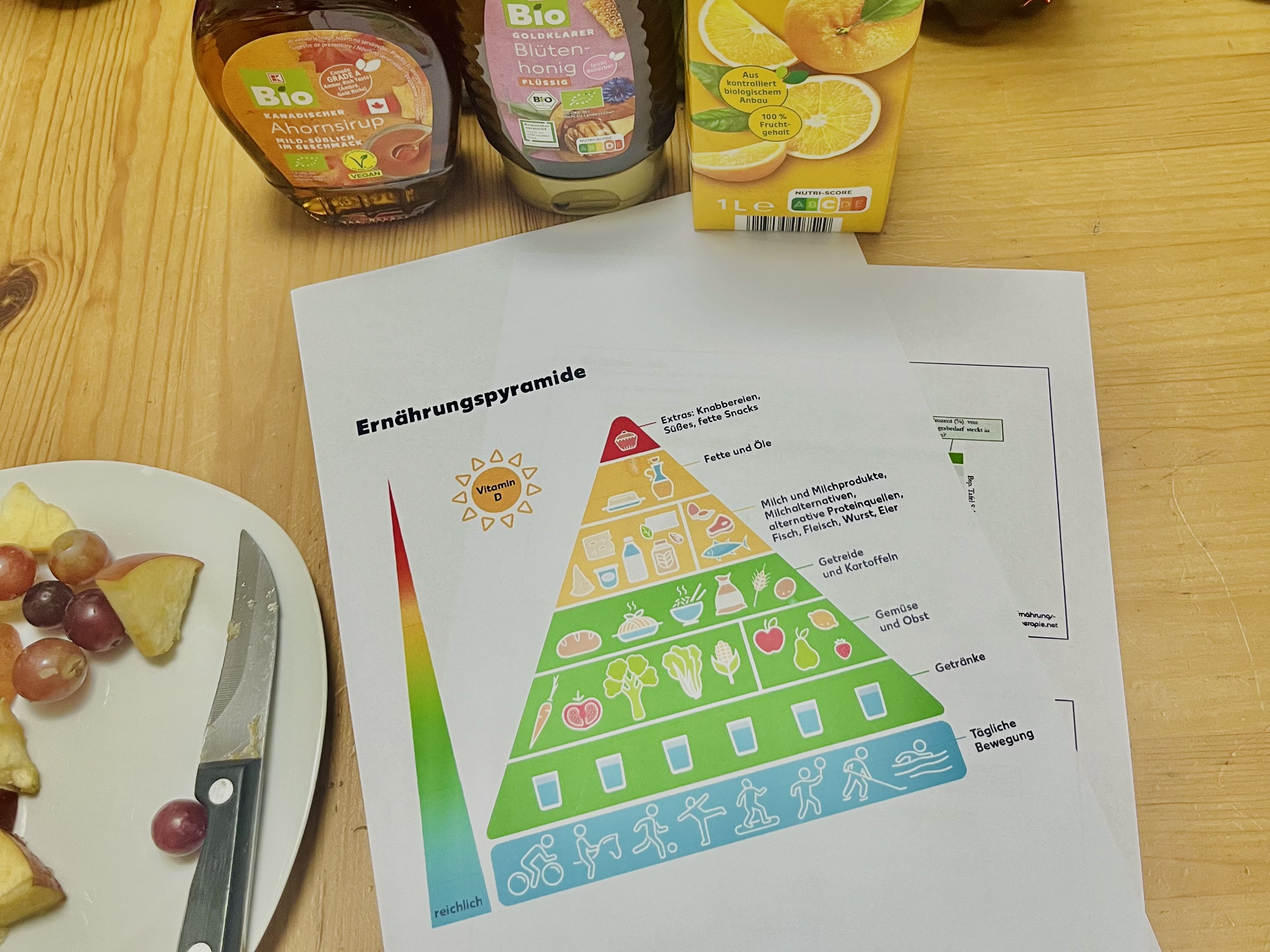 Höhepunkt des Tages war die Zubereitung eines Frühstücks aus frischen Lebensmitteln wie Obst, Joghurt, Saaten und Nüssen, das die Schülerinnen und Schüler sich selbst zusammenstellen konnten. Gemeinsam wurde geschnippelt, gemischt und probiert – eine gute Gelegenheit, das Gelernte gleich auszuprobieren.