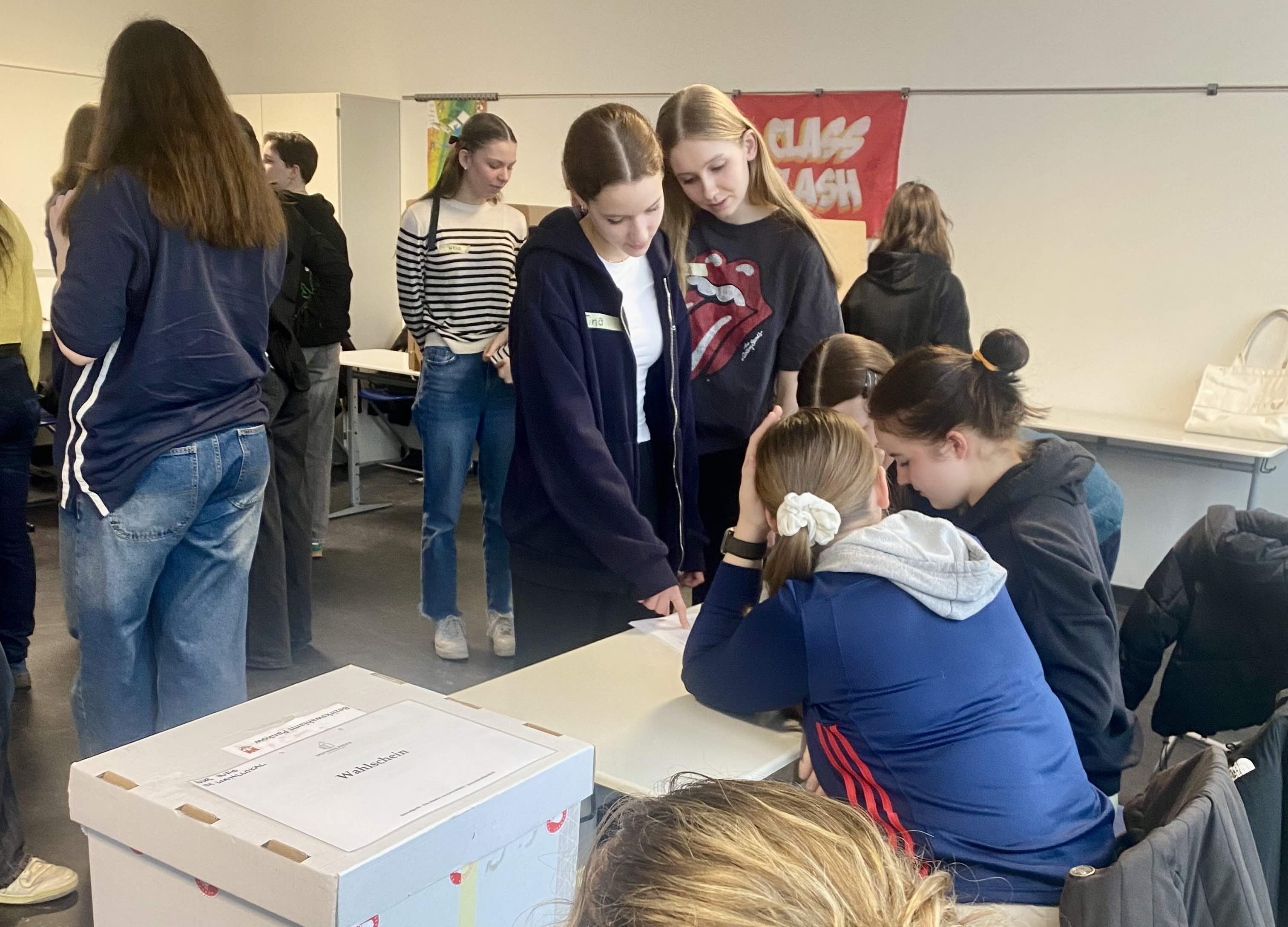 Engagierte Schülerinnen und Schüler des Otto-Nagel-Gymnasiums wollen sich darüber hinaus politisch engagieren und Wahlhelfende bei dieser Wahl werden. Dafür führen die Beteiligungsfüchse einen Workshop für Erstwahlprofis an unserer Schule durch. In dem zwei-tägigen Seminar lernen die Jugendlichen alles, was man am Wahltag in einem Wahllokal wissen muss.