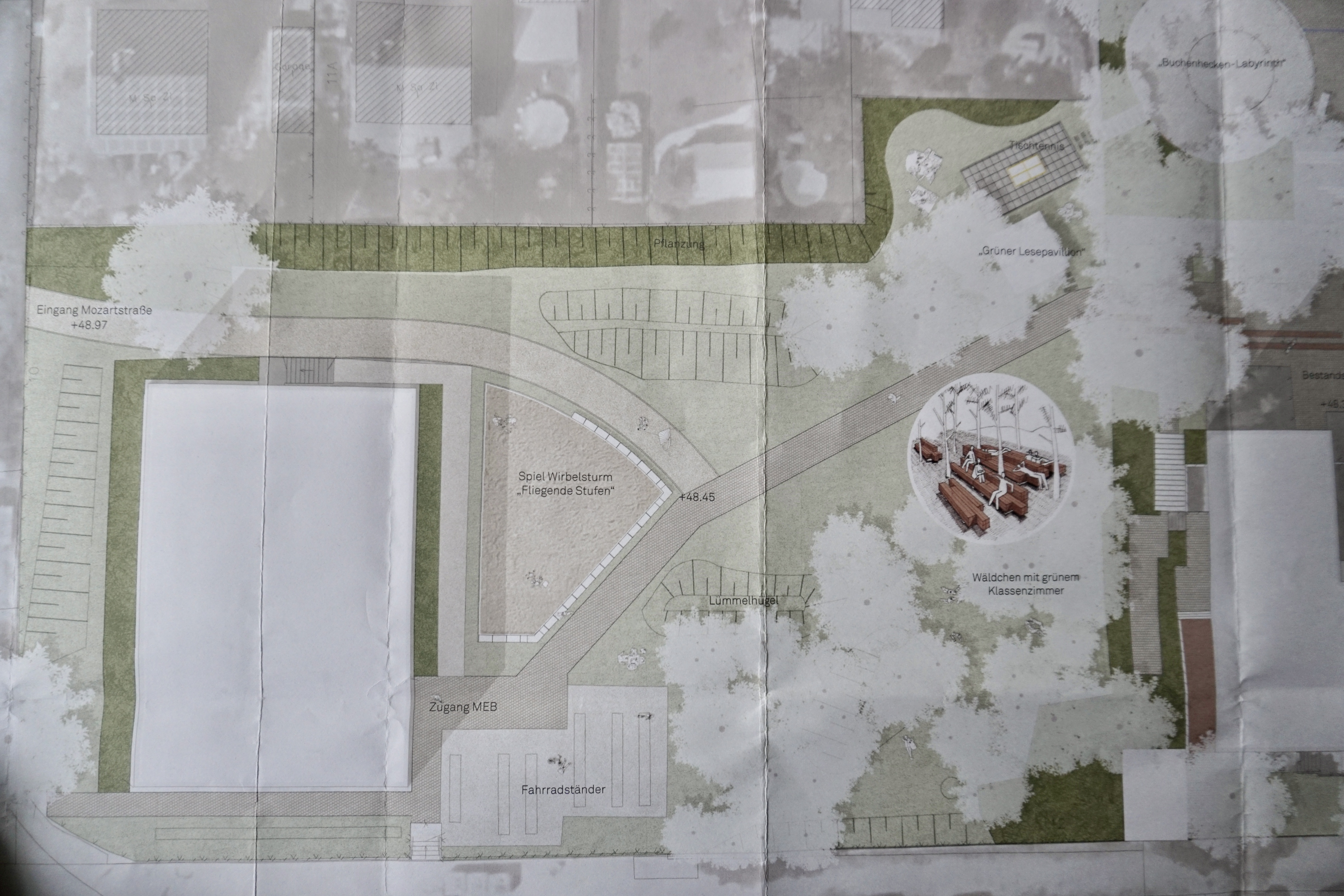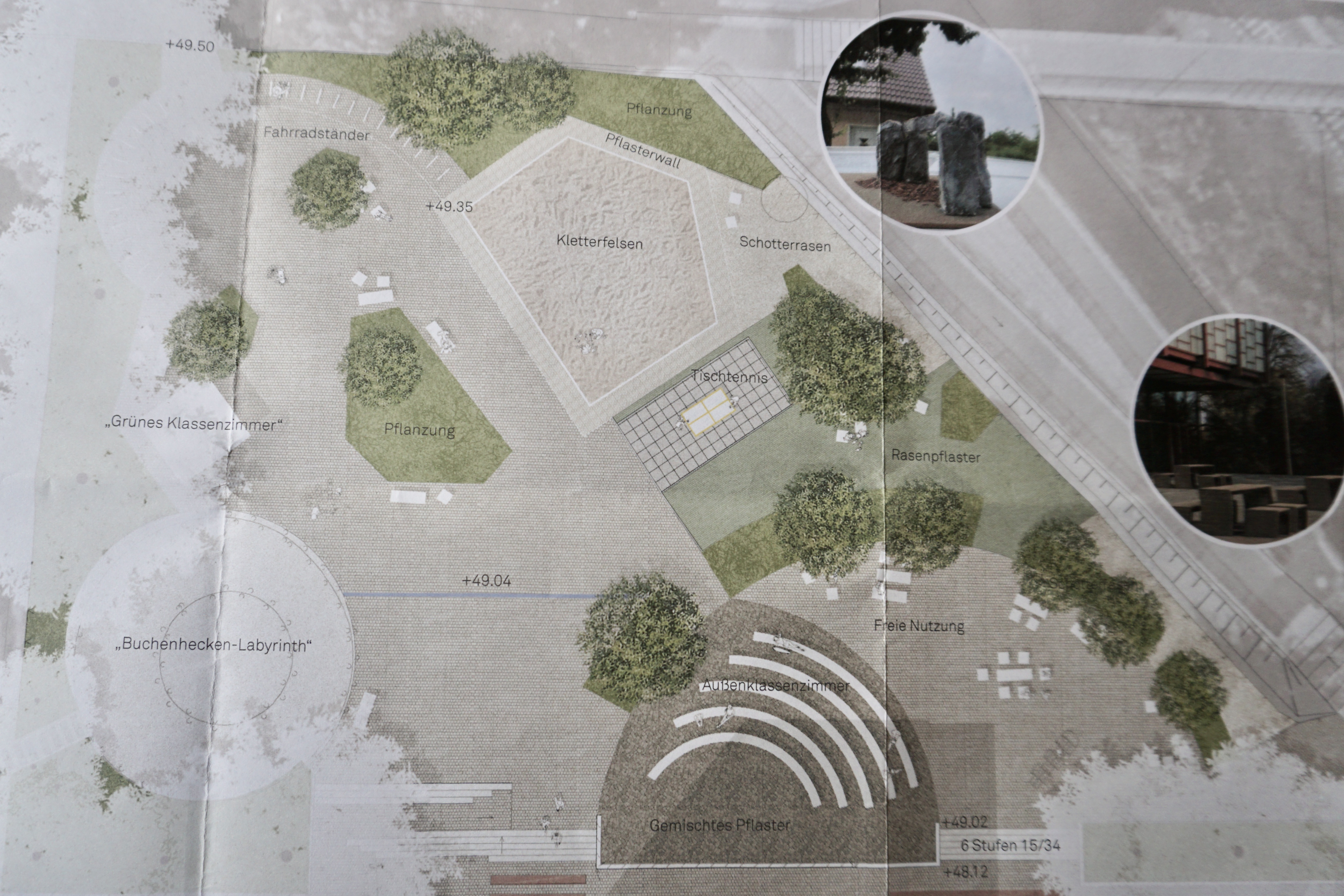 Unser Schulhof wird neugeplant, erweitert und modernisiert. Mit neuen grünen Klassenzimmern und Spielmöglichkeiten erhalten die Schülerinnen und Schüler eine Abwechslung zu den klassischen Klassenräumen. Die Baumaßnahmen sollen wahrscheinlich ab Januar 2022 beginnen.