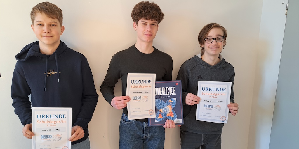 Besonders gute Ergebnisse konnten dabei unsere Schüler Anton M., Lennard L., Hardi A.(alle 11. Jahrgang) und Erik v. M. (9. Jahrgang) erreichen. Alle vier landeten unter den besten 400 TeilnehmerInnen und erhielten dafür eine Urkunde des Dachverbandes für Geowissenschaften.