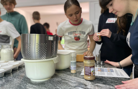 Bei diesem Teilprojekt setzten wir uns mit dem Konsum tierischer Produkte in Deutschland und der Welt und den Vor,- und Nachteilen einer fleischhaltigen Ernährung auseinander und klärten über die Missstände in der heutigen Tierhaltung auf. Wann kann ich auch auf tierische Produkte verzichten? Warum sollte ich das tun? Abschließend konnten wir leckere vegane Gerichte zaubern: One-Pot-Pasta, Hummus und Mousse au Chocolat auf Basis von Kichererbsen.