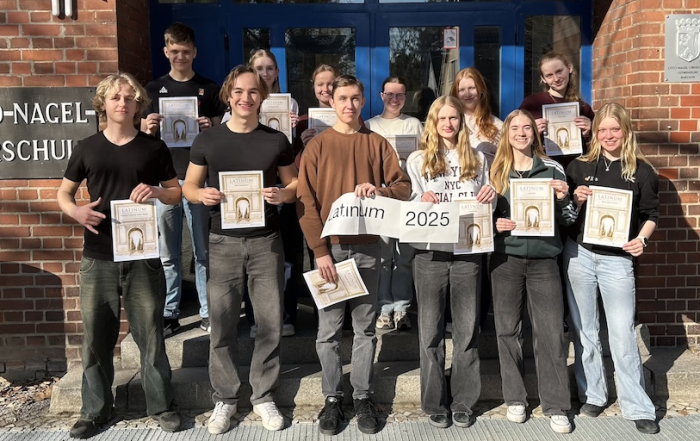 Wer sich für Latein entscheidet, kann die Sprache bei uns ab Klasse 8 als dritte Fremdsprache erlernen. Mit dem Lehrbuch Pontes (Klett-Verlag) gelingt der Einstieg leicht. In der Oberstufe beschäftigen wir uns mit lateinischen Originaltexten, die wir gemeinsam übersetzen und deuten. Digitale Hilfen wie die Lernsoftware Navigium machen das Lernen abwechslungsreich. Der besondere Vorteil: Nach fünf Jahren Unterricht wird das Latinum ohne zusätzliche Prüfung automatisch verliehen.