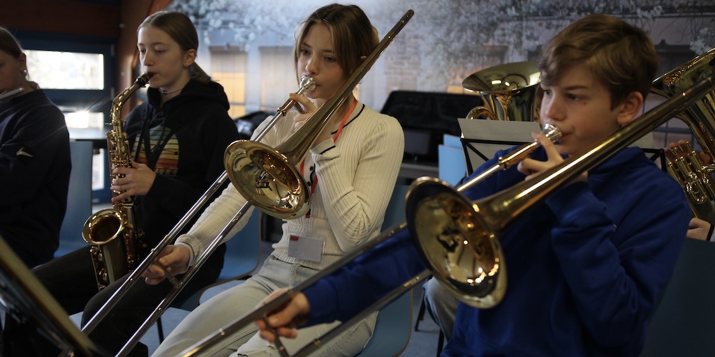 In den restlichen zwei Proben kämpften wir uns in Register- und kleinen Ensembleproben durch die für die Schülys sicher ungewöhnliche rhythmische Komplexität des Rocksongs „Seven Nation Army“ und ehrlich gesagt, haben sie mich hier wieder völlig überzeugt: Nach nur 90 Minuten hatten sie es bereits drauf! Noch vor der Kaffeepause. In der letzten Probe konnten wir noch an Details arbeiten und Ihr ward sehr geduldig, aufmerksam und freundlich, wofür Herr Deschler und ich uns unbedingt bei der BK 3 bedanken wollen.