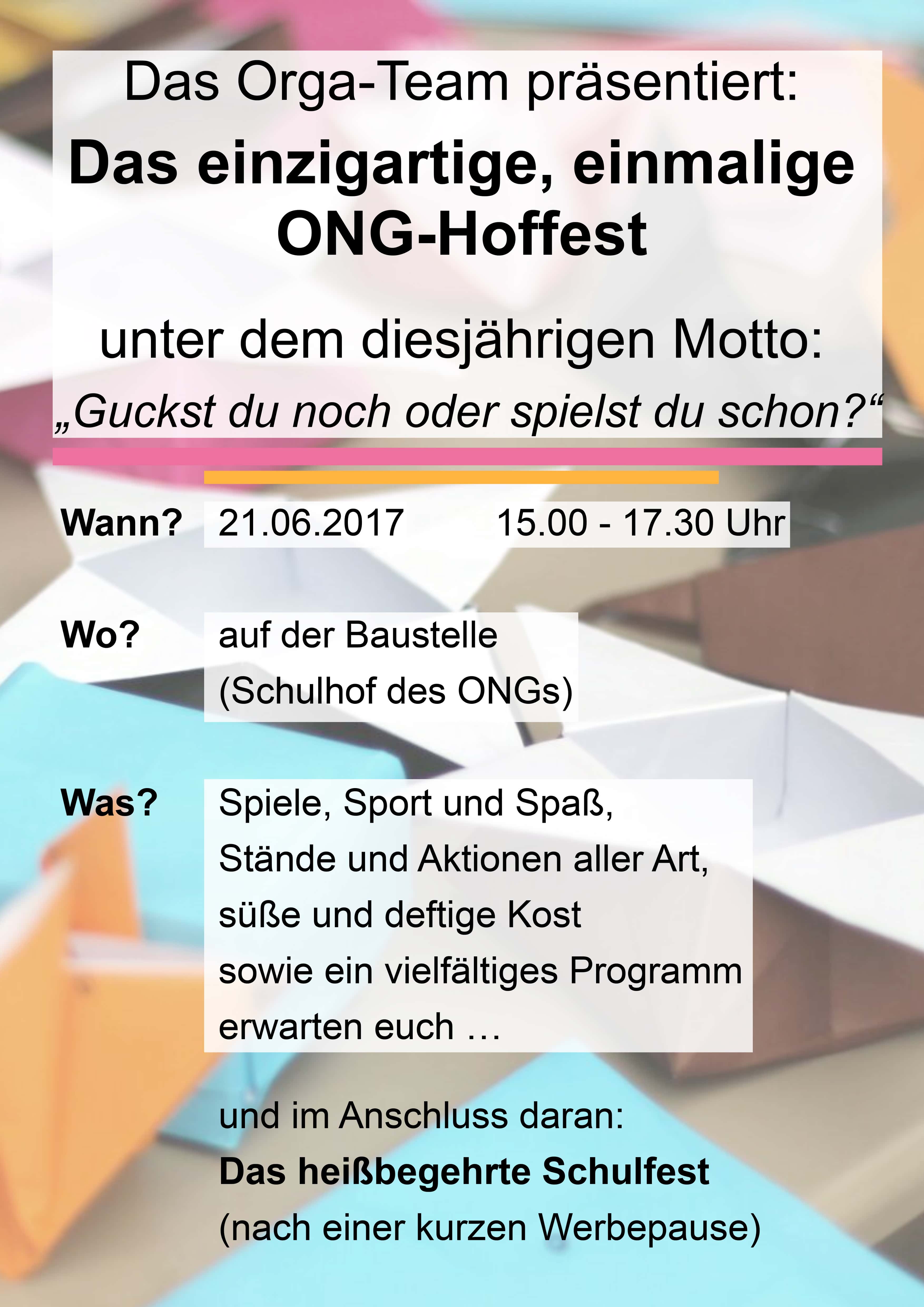 Liebe Schuler*innen, Lehrer*innen, Eltern und Freund*innen des ONGs, wie ihr sicherlich bereits wisst, steht unser alljahrliches Hoffest vor der Tur.