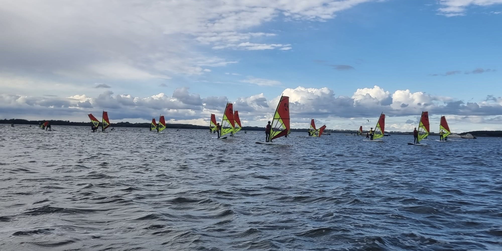 Hier leiteten Benny und Reyk uns an, die Segel richtig zu halten und die Boards auf einen guten Kurs zu bringen. Bei entweder kaum oder sehr starkem Wind lernten wir nach Luv und Lee zu fahren und zu wenden. Dass wir so irgendwann weite Strecken mit Richtungsänderungen zurücklegten, ohne ständig ins Wasser zu fallen, war definitiv ein Highlight. Bei Sonnenschein konnten wir um die Wette fahren oder mussten aufpassen, nicht in die Blauen oder Grünen reinzufahren. Denn um auf dem Wasser erkannt zu werden, bekam jeder ein farbiges Leibchen. Das ONG trug Gelb.