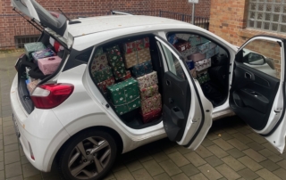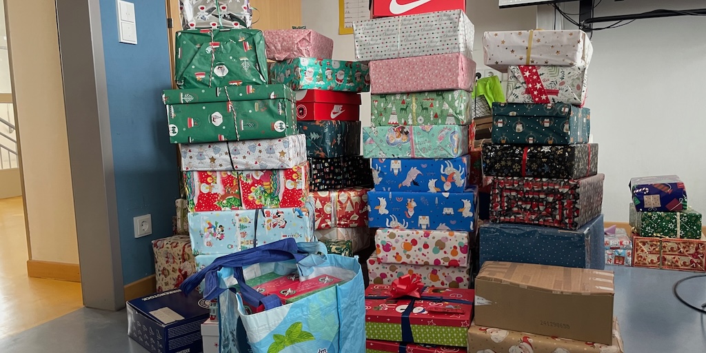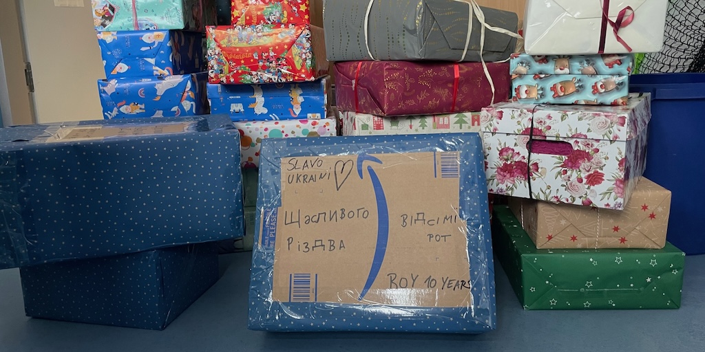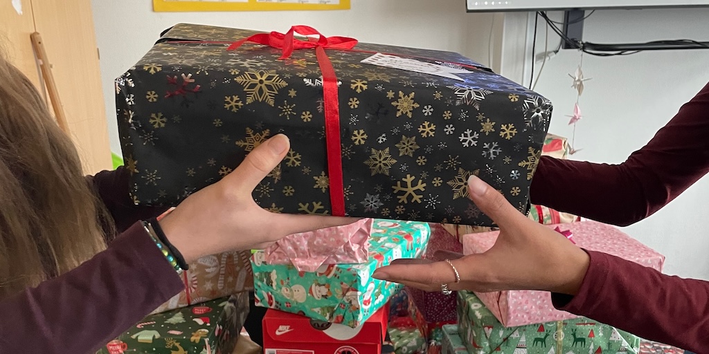 Unsere Schülerinnen und Schüler haben viele weihnachtliche Kartons für Kinder in der Ukraine gefüllt.