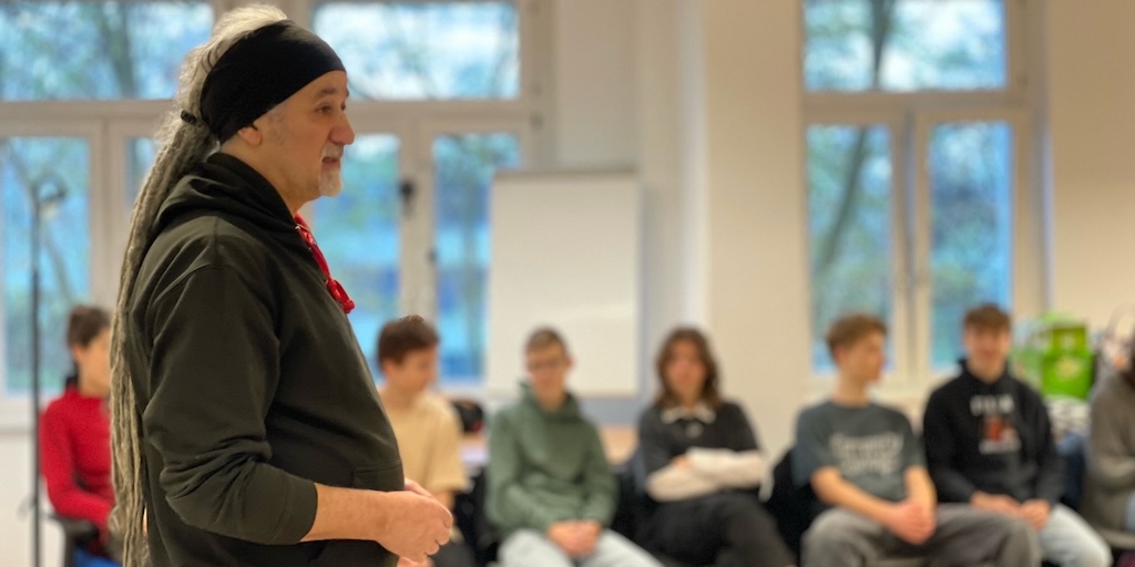 Herr Duschek vermittelt den Schülerinnen und Schülern der 9. Klassen eine aufklärende Lektion über die Gefahren von Drogen.