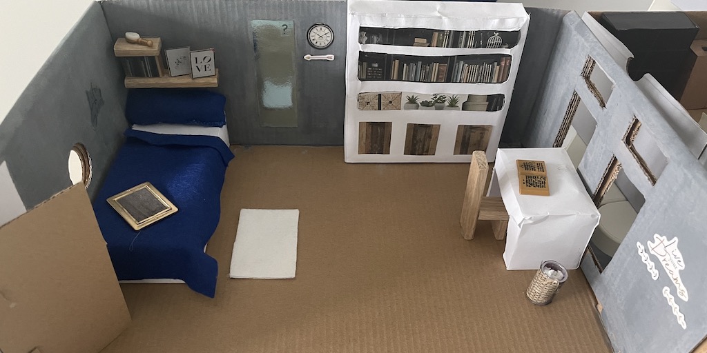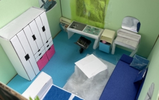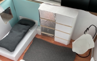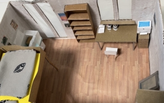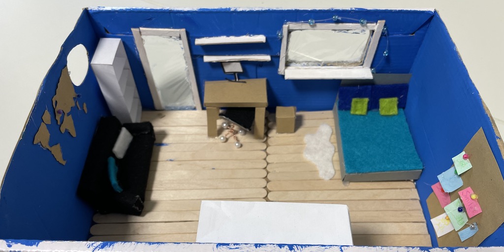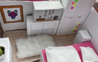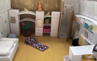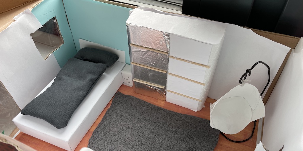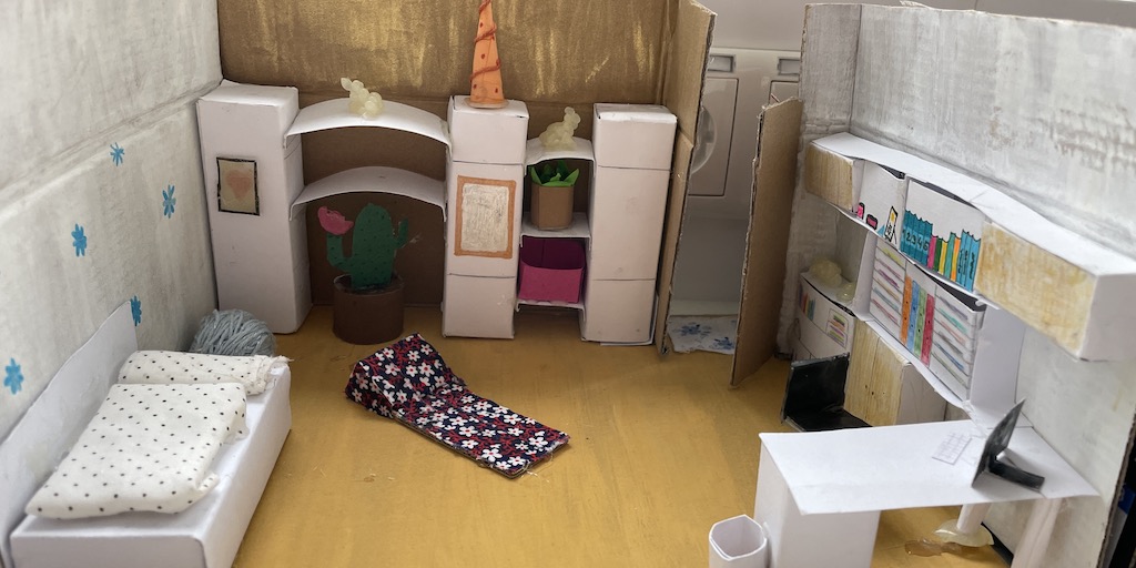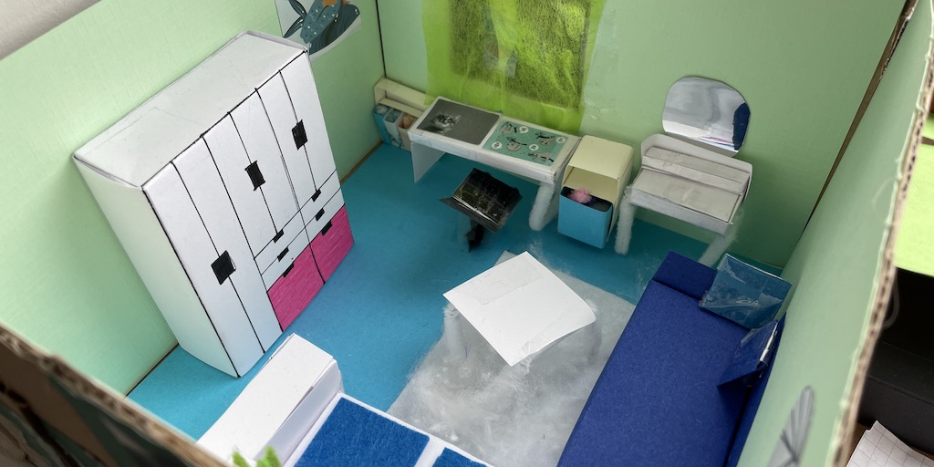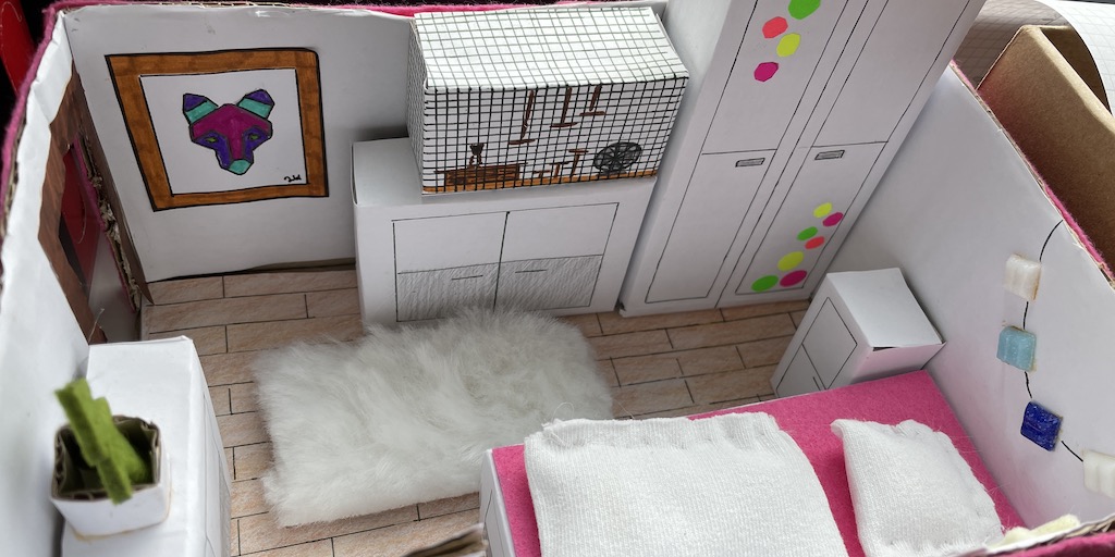 Die 7.1 baut im Mathematik-Enrichment-Kurs ihr eigenes Zimmer maßstabsgetreu in einem Schuhkarton nach.