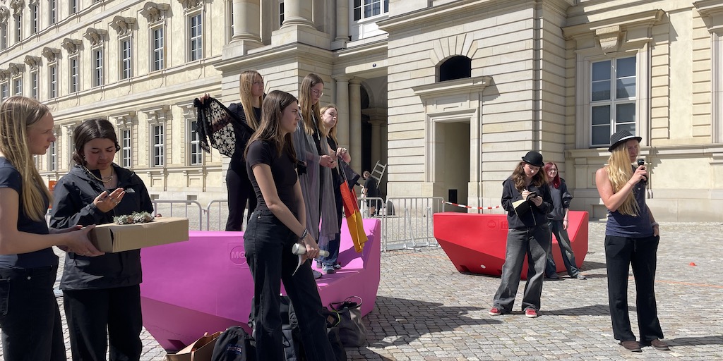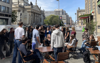 Das sonnige Wetter trug zu guter Laune bei. Nach einer kurzen Pommes-Pause ging es weiter, nicht über die bestehenden Probleme, sondern über die möglichen Lösungen zu sprechen. Wieder in Gruppen informierten wir uns über verschiedene Themenschwerpunkte wie erneuerbare Energien an Schulen oder „Frauen in erster Reihe für den Klimawandel“. Kurz kam die Frage auf, ob es nicht schon zu spät sei, irgendetwas zu retten, aber hier greift aller Wahrscheinlichkeit der Spruch „besser spät als nie“.