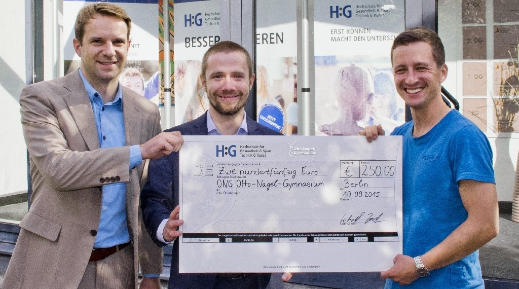 Anfang des Schuljahres warb die Hochschule für Gesundheit & Sport, Technik & Kunst mit der Aktion „So sehen Sieger aus“. Die Mannschaft der H:G, bestehend aus Dozenten und Mitarbeitern der Hochschule, fordert in dieser Aktion Schulmannschaften heraus. Sollte die Schule gewinnen, erhält sie 250€ zur freien Verwendung. Ziel der Aktion sind das Spiel sowie eine Berichterstattung in Form der beliebten „Sportschau“.