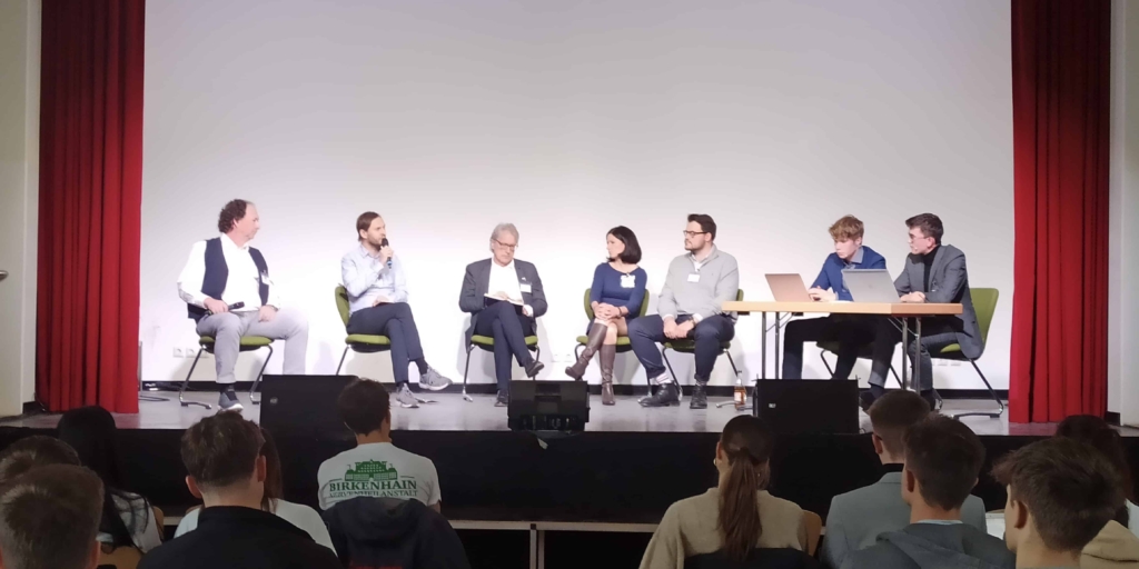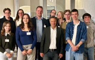 Ein aufregendes Ereignis erlebten interessierte Schülerinnen und Schüler der 10.2 und des 11. Jahrgangs zusammen mit Herrn Rösener und Frau Zimmermann: Ein Bürgerdialog mit dem Bundeswirtschaftsminister Robert Habeck zum Thema ,,Die EU von morgen: Wettbewerbsfähigkeit, Handlungsfähigkeit und Resilienz stärken“. In einer Fishbowldebatte hatten die Teilnehmenden die einzigartige Möglichkeit, direkt Fragen an den Minister zu stellen.