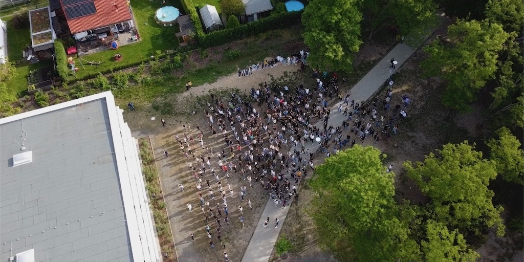 Letzten Mittwoch fand auf dem Schulhof ein Zumba-Flaschmob mit allen Schülerinnen und Schülern statt als Teil des Festjahres.