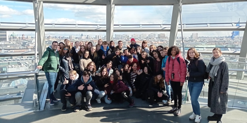 Schülerinnen des 9. Jahrgangs begrüßen unsere spanischen Austauschschülerinnen und Austauschschüler aus Los Realejos, Teneriffa, in Berlin. Gemeinsam erkunden sie unsere Hauptstadt und lassen sich auf die Kultur Berlins ein.