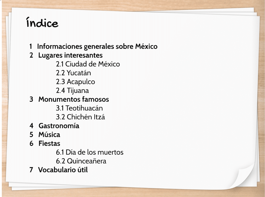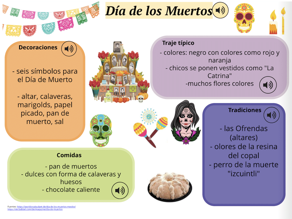 Die Klasse 9.3 beschäftigte sich im Spanischunterricht mit dem faszinierend vielseitigen Land Mexiko und gestaltete einen digitalen Reiseführer, der zeigt, dass das meistbesuchte Reiseziel Lateinamerikas viel zu bieten hat. Euch erwarten Texte und Audios zu spannenden Städten und Sehenswürdigkeiten, kulinarischen und musikalischen Highlights sowie farbenfrohen Festen.