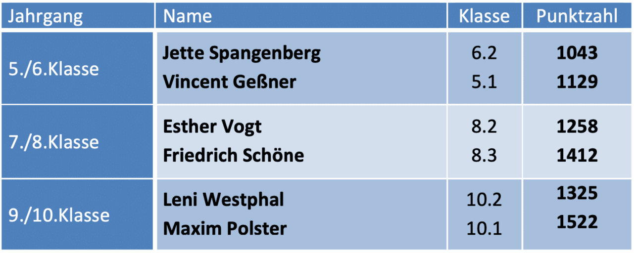 Nach aufregenden Wettbewerben ist die sportlichste Klasse 2024 die... 8.1 mit 52 Punkten!