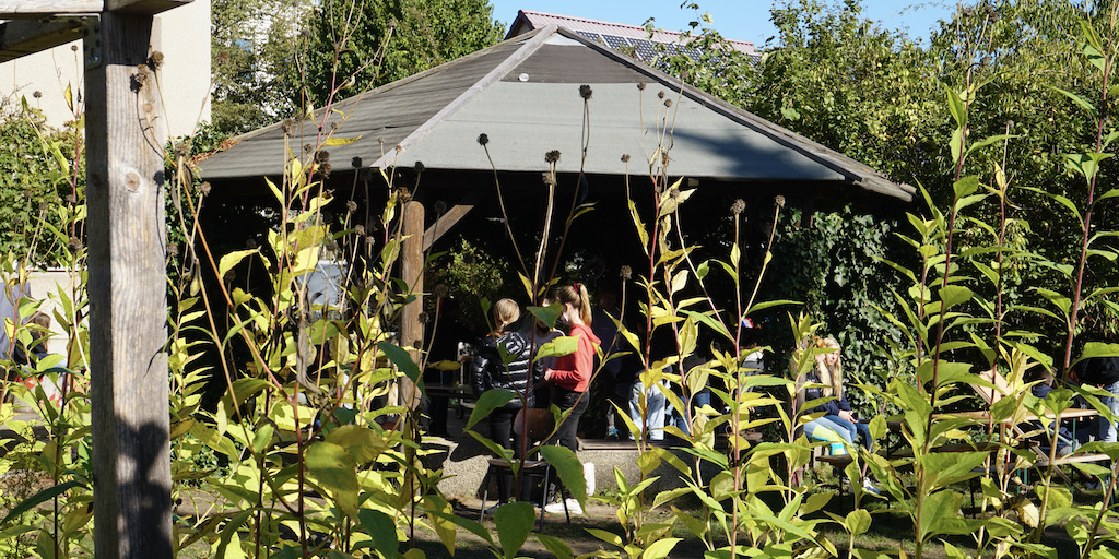 Der Enrichmentkurs "The Great Transfomation" gestaltete den Schulgarten beim Treppenhaus um und legte nachhaltig Beete an.