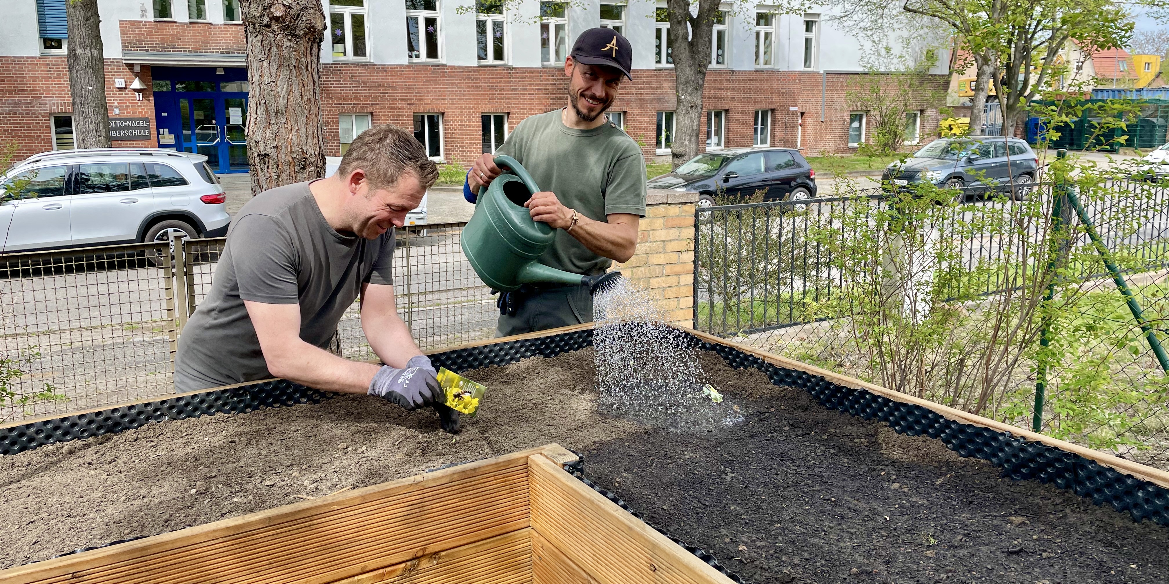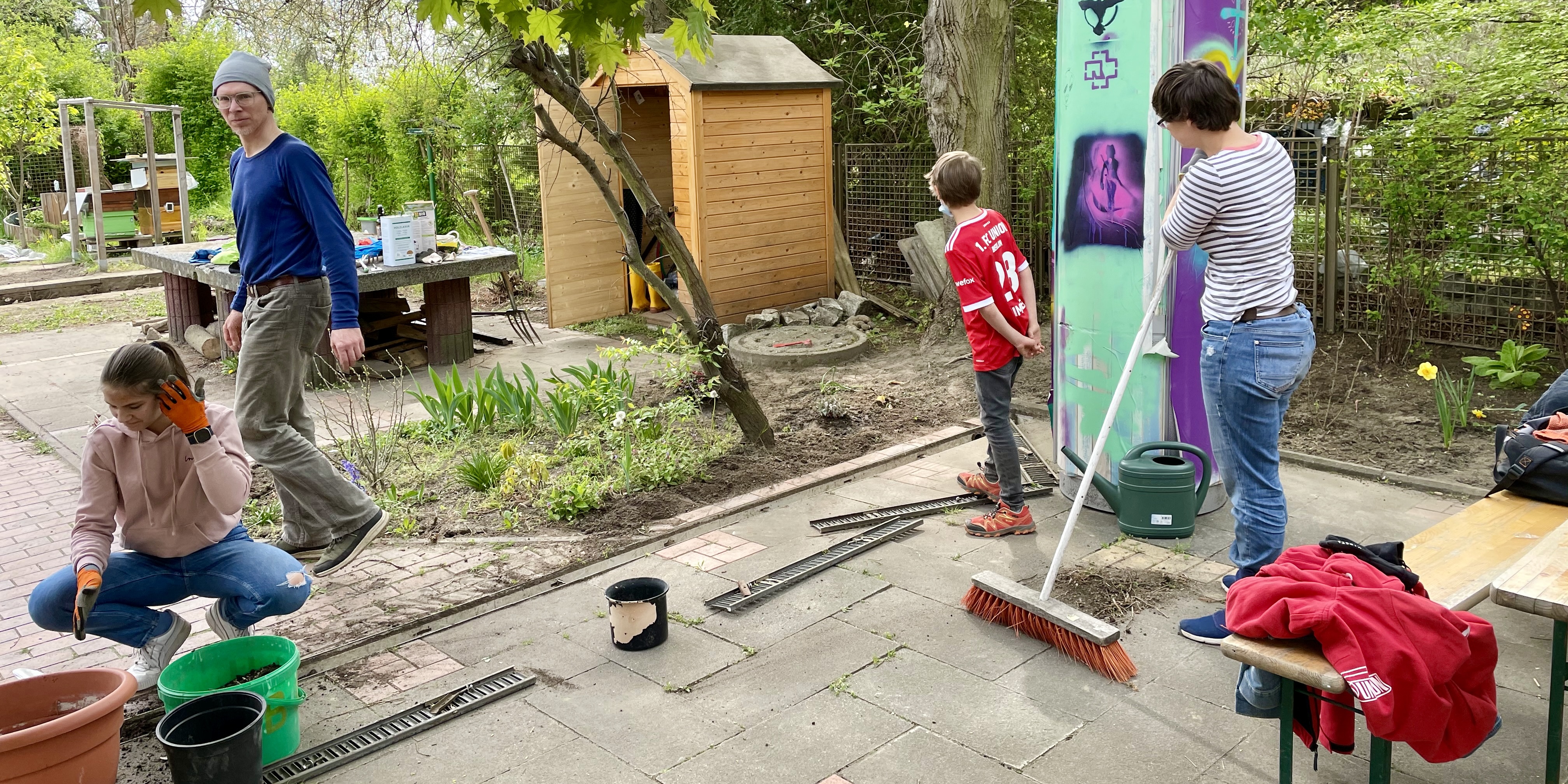 Trotz langen Wochenendes engagierten sich wieder einige Familien und Schülerinnen und Schüler des ONG am Freitag, dem 28.04. nachmittag im Garten des Treppenhauses