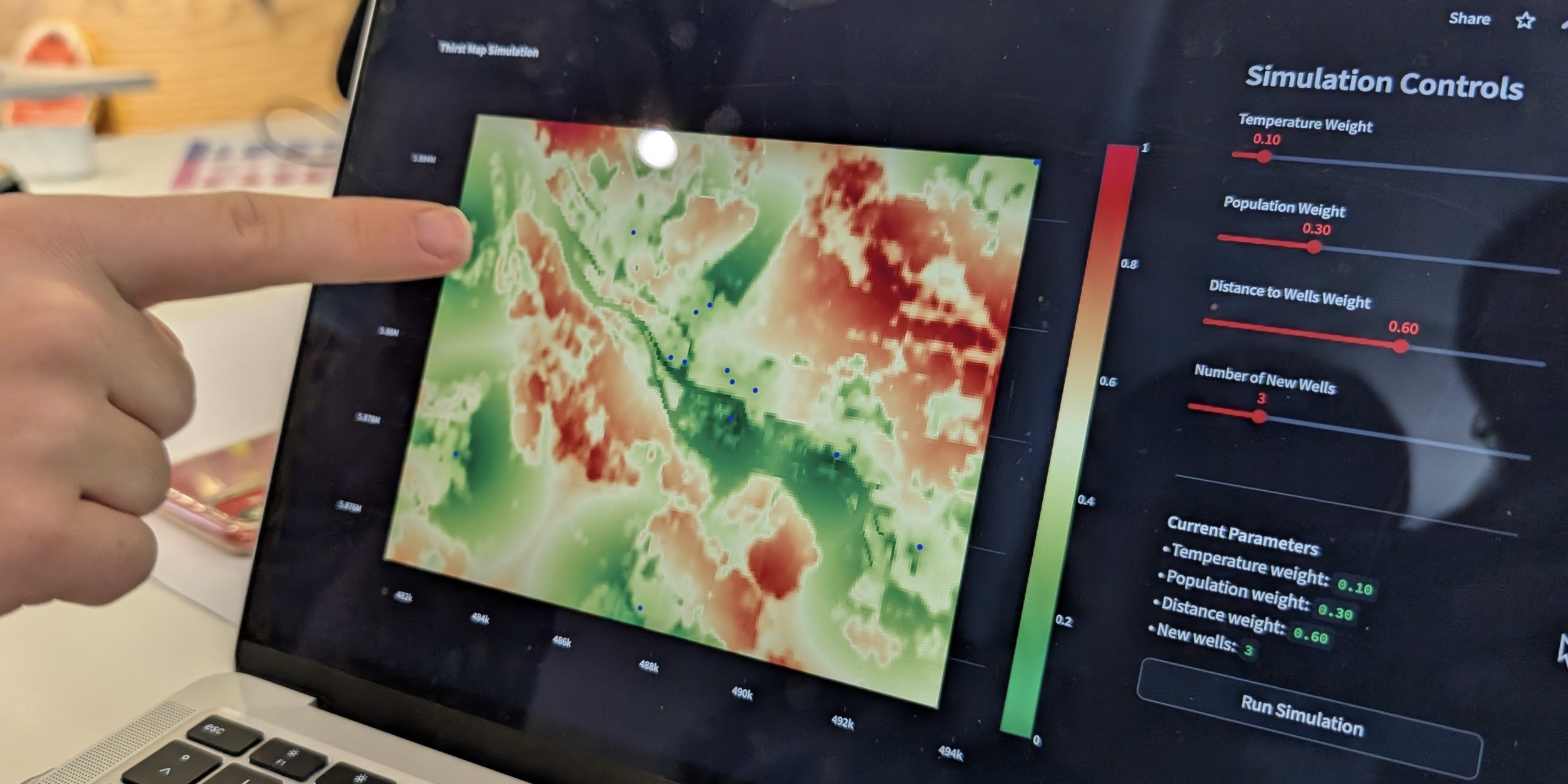 Auf der Grundlage von Temperaturdaten, Bevölkerungsdichte und den Standorten der bestehenden Wasserspender in der Umgebung wird jeder Platz entsprechend seiner „Durstigkeit“ bewertet. Diese Daten stammen von Satelliten und öffentlichen Quellen zu den Brunnenstandorten.