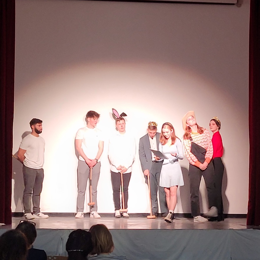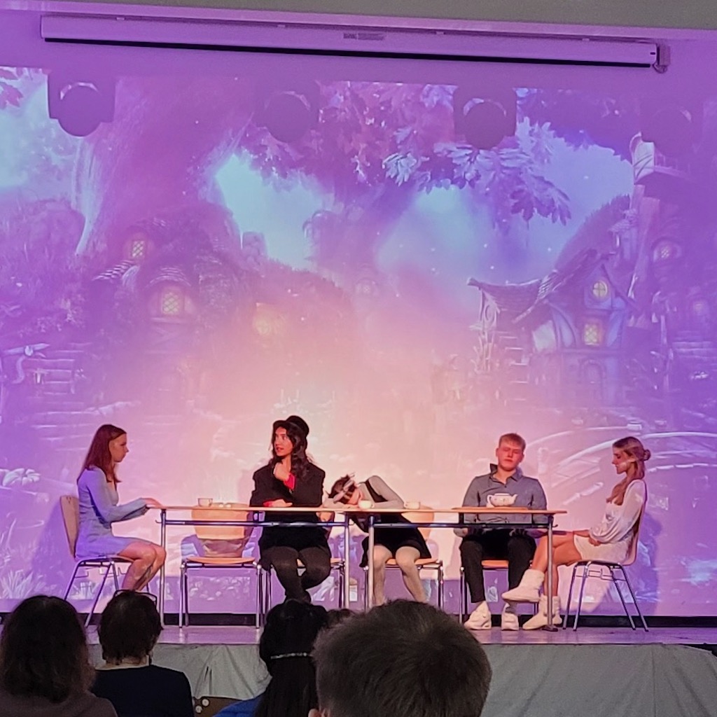Das Theaterfestival wurde mit einer Interpretation des bekannten Stück „Alice im Wunderland“ von der Theatergruppe von Herrn Weißschuh (ONG) eröffnet. In diesem Stück wurde die wundersame Geschichte von Alice und ihren interessanten Freunden erzählt. Mit gutem schauspielerischem Geschick und raffinierten Elementen, wie der Schattentechnik, konnten das Publikum in die verwunschene Welt eintauchen und unteranderem die Grinsekatze, den Hutmacher und die Herzkönigen kennenlernen.