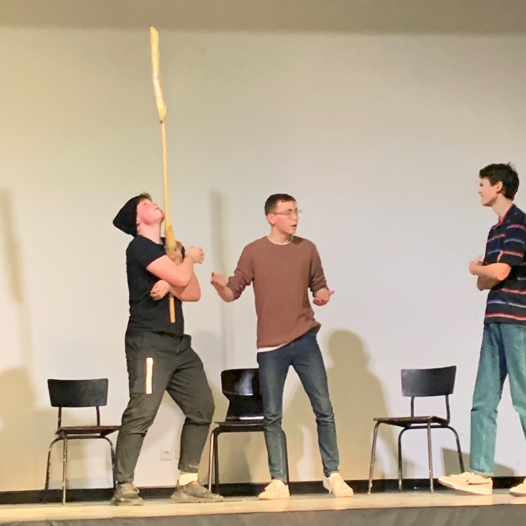 Ein weiteres Stück vom ONG wurde von der Theatergruppe von Herrn Casey aufgeführt: „Hotel Bizarre“. Bruno und Antonio befinden sich nach einem Raubüberfall einer Tankstelle auf einer problematischen Flucht. Hierbei landen Sie jedoch immer wieder an falschen Orten im Hotel und treffen die unterschiedlichsten Personen. Die Tanzeinlage im Stück war besonders erfrischend.